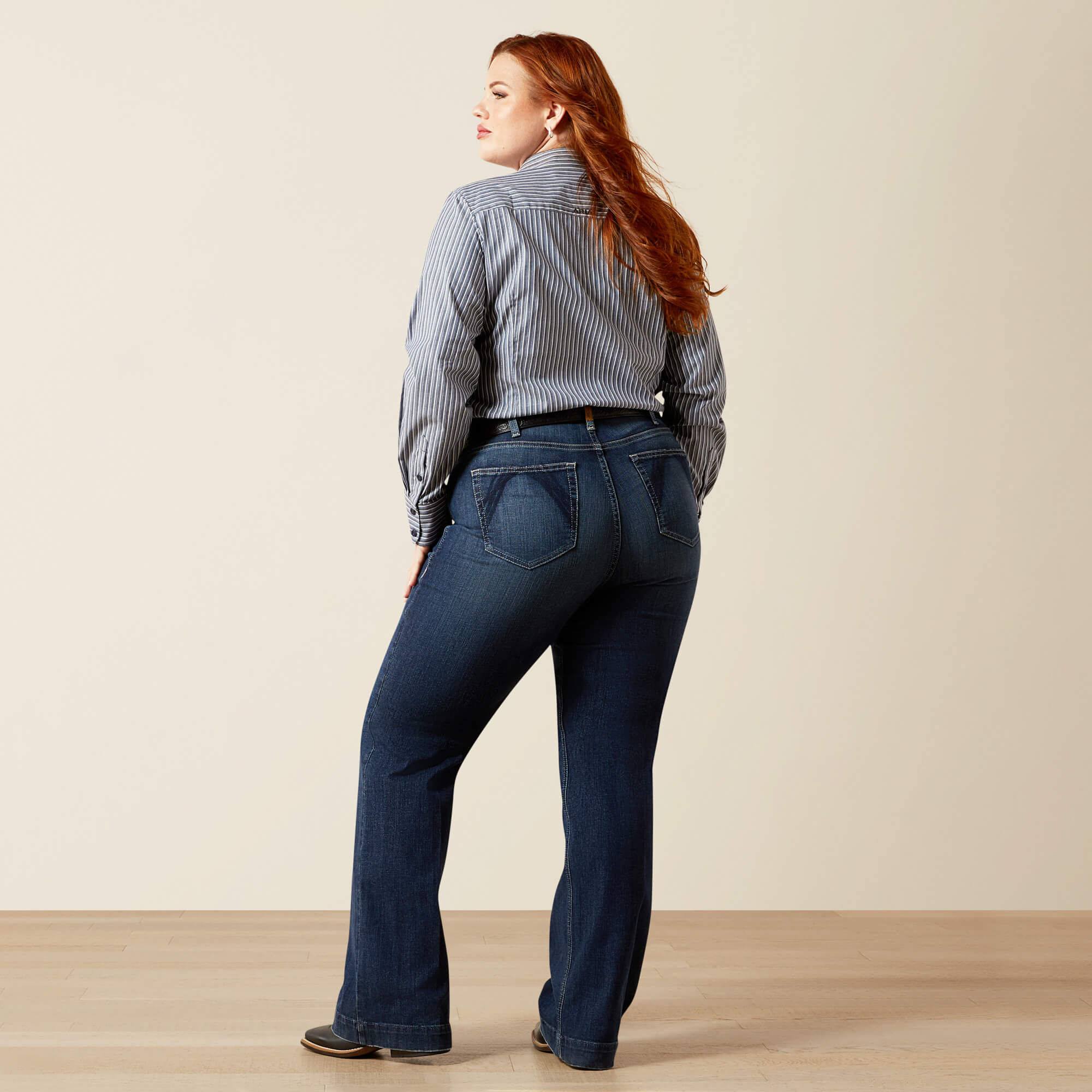 She’s sophisticated. She’s versatile. She’s our most-loved fit for a reason. Our perfect-rise trouser is at the top of her game in this rich, saturated wash. Dark navy stitching adds an elevated touch to the otherwise clean back pocket.